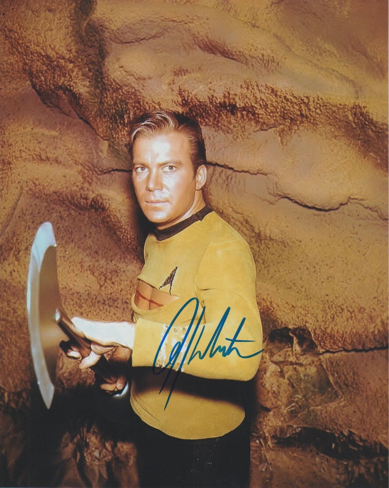 William Shatner AUTOGRAPHED. This is an incredible piece of movie memorabilia featuring William Shatner as Capt. Kirk Star Trek.The photograph measures 8 x 10 and comes with a certificate of authenticity for the original autograph. It is a must-have for any fan of the movie and a fantastic addition to any entertainment memorabilia collection. The photograph is in excellent condition and is sure to be a centerpiece of any display. The signature is clear and authentic, making this a unique and rare item for collectors. This photograph was made in the United States and is an original piece of movie history